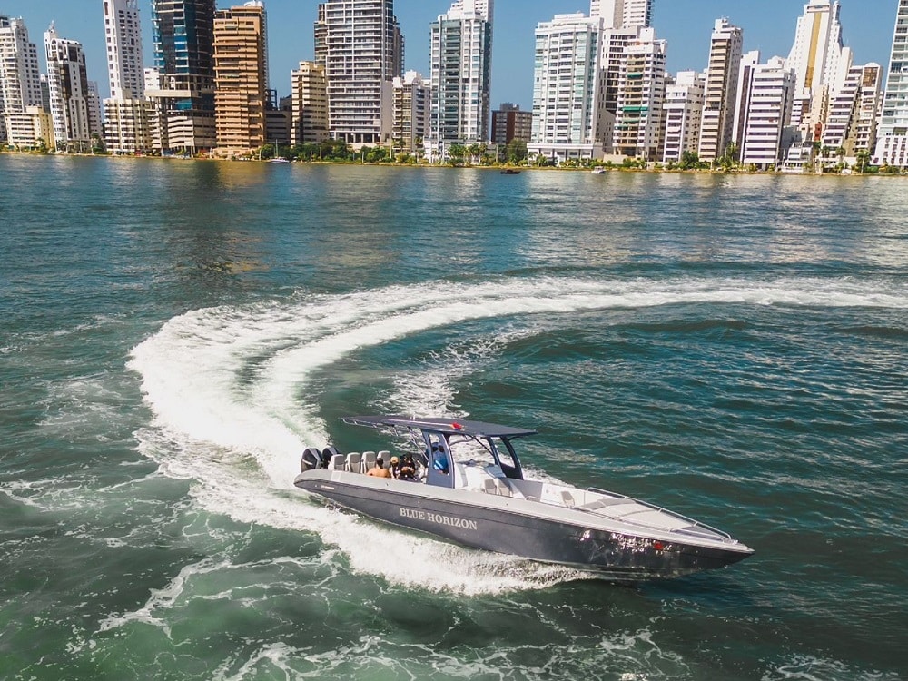 La Lancha BLUE HORIZON es una de nuestras embarcaciones más exclusivas, diseñada para brindar una experiencia náutica superior. Su diseño moderno, su potencia y sus acabados de lujo la convierten en una de las mejores opciones para recorrer las Islas del Rosario y más allá.