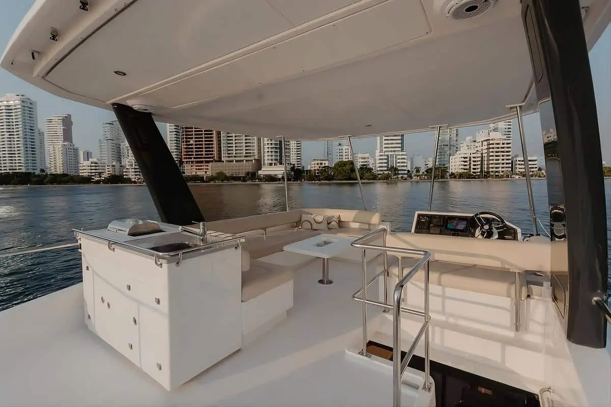 El alquiler del Catamarán Eclipse V – Leopard 43 Power Cat en Cartagena representa una de las experiencias náuticas más exclusivas y confortables disponibles en Cartagena de Indias. Diseñado para ofrecer estabilidad superior, amplitud y elegancia, este catamarán a motor redefine la forma de explorar el Caribe colombiano.